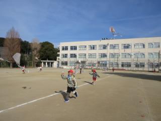 1年生の子どもたちが生活科で作った凧を上げていました。