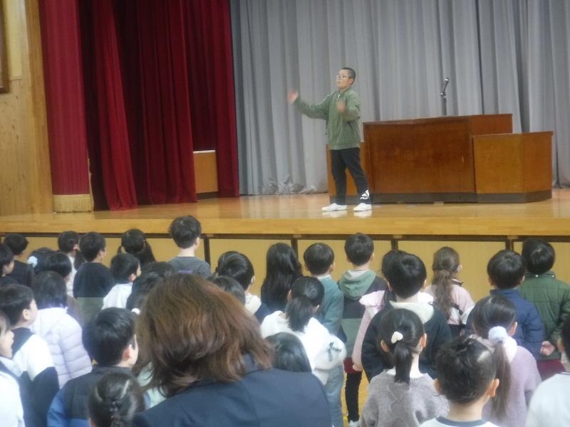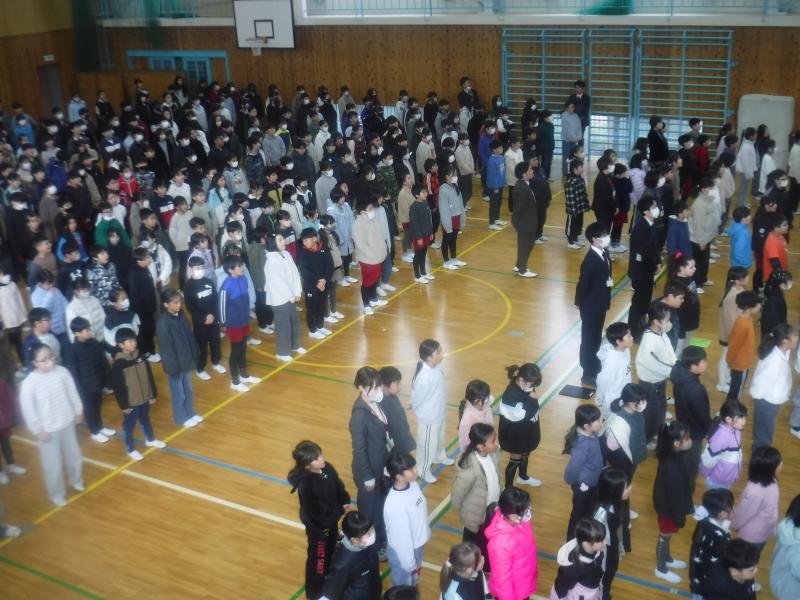全校生徒が寒い体育館に集合し、静かに落ち着いて校長先生のお話を聞くことができました。