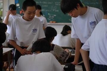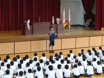 | | 8月21日(月)に、小中部活動交流を行いました。 これは、小学生が中学校の学校生活にスムーズに移行できるように部活動の交流を行うことで、中学校を理解する場や生徒と交流する場を設けたいと考え、研究に合わせて行ってきました。 本校の部活動を、午前と午後に開放し、自分の興味ある部活動を2つまで体験してもらいました。 参加している小学生は、緊張しながらも一生懸命取り組み、受け入れる中学生は、優しい先輩として小学生への対応を親身に行っていました。小中学生とも、夏の暑い一日でしたが、心の中には温かいぬくもりを感じて終わることができたと思います。 |