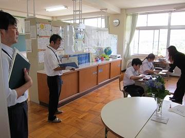 | | 6月14日(水)に学校訪問といって、豊橋市教育委員会の方に、授業風景・校内環境・諸帳簿など、学校の様子を一日見ていただく機会がありました。 1時間目には、校長室で学校の状況を説明、2時間目から5時間目までは、授業を参観していただき、生徒たちが頑張って授業に取り組んでいる様子や校内環境を見ていただきました。6時間目は、様々な帳簿が適切に処理されているかも点検していただきました。 最後に、一日の参観を終えてのご指導をいただきました。生徒たちは、とても明るく元気にしかも教師と生徒の距離感がとても良い雰囲気を感じたと称賛していただきました。 日頃の学校経営が、適切であるかどうかを見ていただき、改善点などを教えていただく絶好の機会となりました。 |
