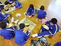その後、被災時の避難所を想定した炊き出し訓練で、ビニール袋で炊いたごはんとカレーライスを食べました。