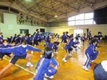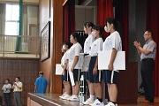 体育館で3年ぶり全校そろって行うことができました。各部のキャプテンが大会にかける意気込みを披露しました。