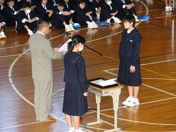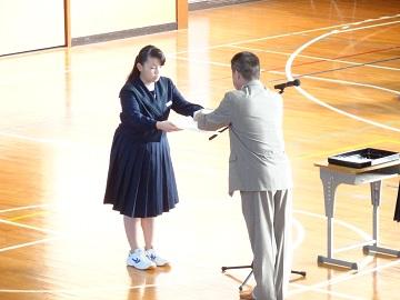| | 6日(月)に生徒朝会を行いました。 生徒会長の挨拶から始まり、まず、音楽委員会から合唱コンクールでの学級紹介・BGMで優秀な成績であったクラスの表彰を行いました。その後、弓張賞をはじめ最近実施のポスターコンクールや英語弁論大会で優秀な成績であった生徒への表彰を行いました。最後に、生徒会長からの話と各委員会等からの連絡があり、生徒朝会を終えました。朝会後には、各学年の先生からの話を聞いてすべてを終えました。 合唱コンクール後の新しい週が始まります。気持ちを切り替えて生活していきたいものです。 |