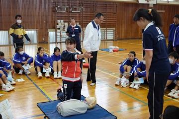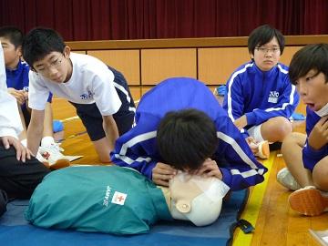 | | 11月8日(水)に、2年生がAED講習会を行いました。名古屋から日本赤十字社の方々が人体模型をもってきてくださり、AEDの使い方について教えていただきました。この講習は、毎年、2年生が実施し、中学校時代に一度は学習することになっています。 全体の説明の後、8つのグループに分かれ、それぞれのグループごとに丁寧に説明を受けました。 気道の確保、マウスツーマウス、そしてAEDの使い方など、いざという時の対処法を一人一人体験しました。 職業について学び社会性を育てている2年生です。この講習を通して、いざという時に社会に役立つ行動ができる一員になってほしいです。 |