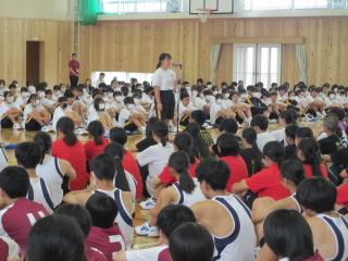 6月28日(金)に、全校生徒が体育館に集まって、総合体育大会・吹奏楽コンクールの壮行会が行われました。