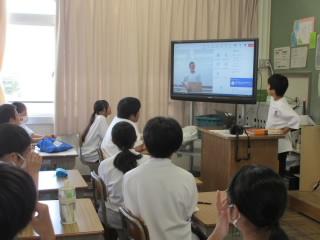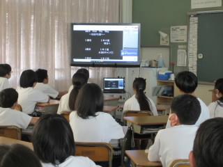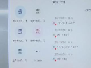 リモートでつないでいる各クラスから、チャットで答えが届きます。