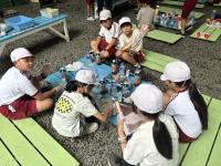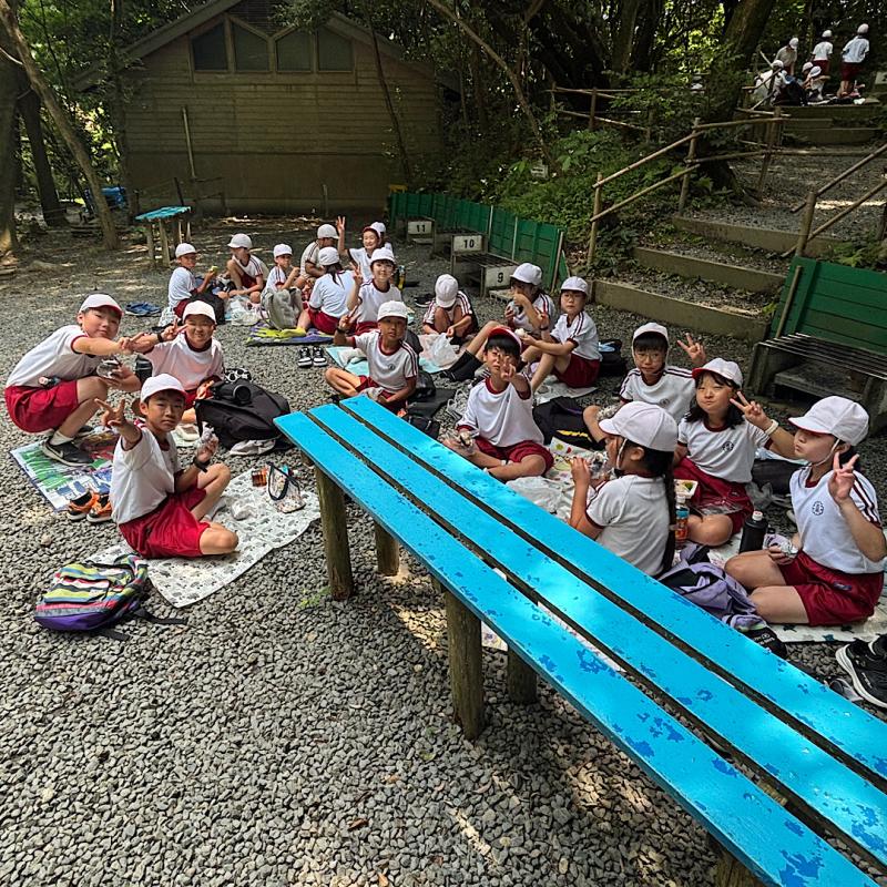 木陰は涼しくて時折吹く風が気持ちいいです。自然を感じながら持参したお弁当を食べました。保護者の皆さまお弁当の準備ありがとうございました。