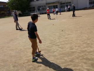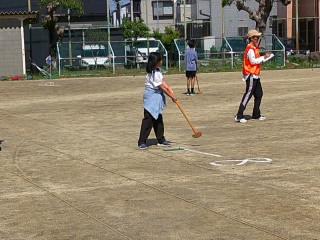 2年生の体育の授業では、ボールを使った運動をしました。「腰や足、顔の周りをボールを落とさないように回す」「高く上にあげてキャッチする」「足でドリブルをして線の上で止める」などの運動をしました。うまくできなくても一生懸命取り組んでいました。
