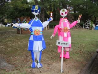職員室前の廊下の掲示板に「あさひっ子作品展」のコーナーがあります。今回は、1年生から6年生までの作品が並んでいます。