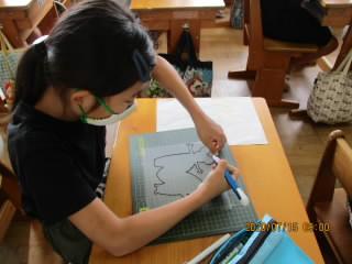 5年生は、フラッグ運動のビデオを見ながら「動きを描く」ことをしていました。新しい課題に挑戦している姿は、真剣そのものでした。