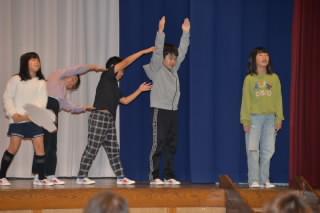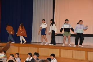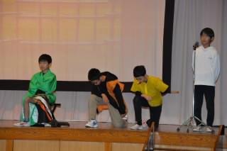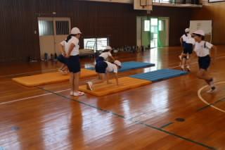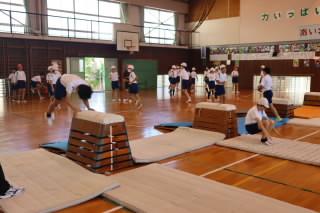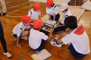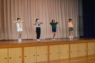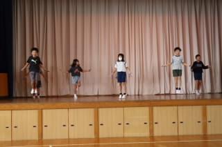 1年生が、体育「いろいろな動き作り」の学習をしています。1分30秒のマツケンサンバの歌に合わせて、4つの班に分かれ、班ごとに踊りを考えました。どの班も、いろいろな動きを試しながら練習していました。どんな踊りが完成するか、とても楽しみです。