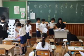 4月30日(水)の2時間目に、『1・2年なかよししゅうかい~がっこうたんけん~』が行われました。6つのグループに分かれて、まずはそれぞれのグループで名刺交換をしました。その後、スタンプラリー形式でグループごとに職員室や保健室、理科室などの特別教室を回り、先生たちからスタンプを押してもらっていました。2年生は1年生に、職員室や保健室に入る時のあいさつの仕方や特別教室ではどんな勉強をするのかを教えていました。