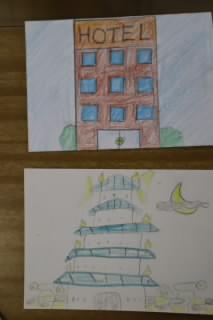 『絵の具と水のハーモニー』『けずってつけて わたしたちの形』の作品鑑賞をしました。友達の作品を見て「すてきなところ」をプリントに書きました。