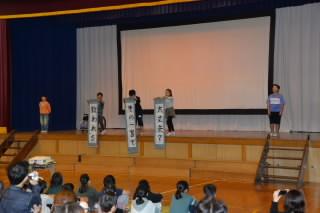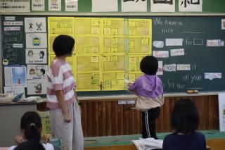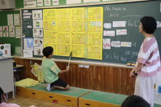 6年生の英語の授業では、ALTと英語専科の先生と一緒に、ゲームをしながら楽しく学習をしていました。