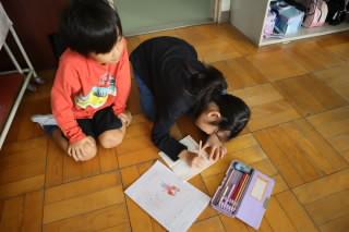乾いたら自分の顔を切り抜き、手形と一緒に台紙に貼ったら完成です。どんな作品ができ上るかとても楽しみです。
