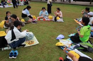 5月1日(木)、豊橋公園へ縦割り班でたんぽぽ遠足に出かけました。豊橋公園に到着したら、ウォークラリーのスタートです。地図を見ながら縦割り班ごとに豊橋公園内のチェックポイントを回ります。班のみんなで地図を見て、どうやって行ったらよいかみんなで相談していました。チェックポイントでは、課題に挑戦しました。『フラフープにいくつ玉が入るか』や『変顔で先生を笑わせる』など、全部で9つのチェックポイントがあり、多くのポイントを集めようとみんなで必死になっていました。ウォークラリーが終わると、楽しみにしていたお弁当の時間です。班ごとにかたまって楽しくお弁当を食べていました。お弁当を食べ終わると、陸上競技場に移動し、縦割りグループごとに遊びました。広々とした陸上競技場で子どもたちは走り回っていました。短い時間でしたが、「おにごっこ」や「ドッジボール」などをして楽しい時間を過ごしました。天気に恵まれ、子どもたちにとって楽しい思い出になったひまわり遠足になりました。