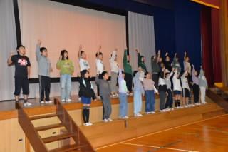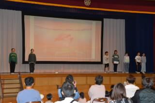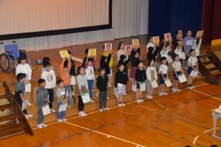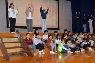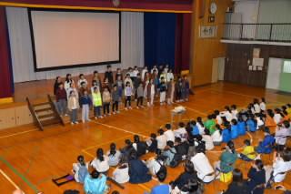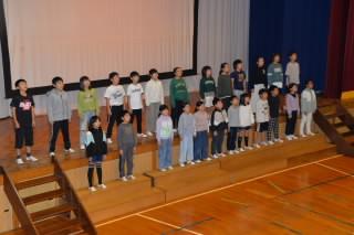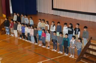 2月17日の朝のくすのきタイム、体育館で歌声集会を行いました。