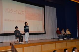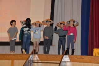 3月3日は桃の節句です。旭小学校では毎年恒例の「ひな祭り集会」が行われます。子どもたちが人間雛になり、雛段に並びます。全校の子どもたちで、健やかな成長を祝います。