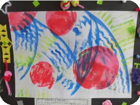 1年生は、運動場で竹とんぼを飛ばしました。初めはうまく飛ばなかった子も慣れてくるにしたがって空高く飛んでいました。