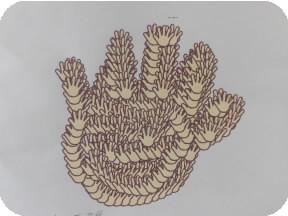 1年生は、体育館で人文字をつくっていました。リーダーになって動きを指示する子がいたりして、クラスで協力して人文字をつくりました。これは、何という字でしょうか?(ヒント:ひらがなです)