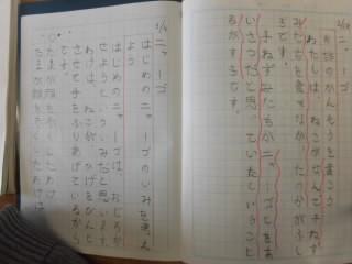 1年生は、4月からひらがなの勉強を始め、ノートにも文章が書けるようになりました。写真は、ノート点検の様子です。できるようになったことをほめていただきました。