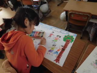 3年生は、「友達と遊んだよ」の絵の仕上げをしていました。