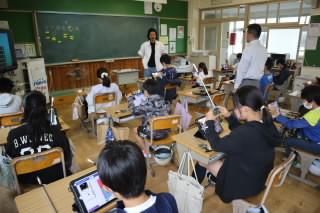 学習室と図工室、理科室ではクイズに挑戦しました。「のび太の身長からアンパンマンの身長を引いたら何㎝になるか」や「旭小学校の学級は全部でいくつあるか」などの問題を縦割り班のみんなで相談しながら答えを出していました。