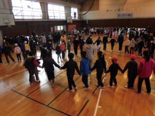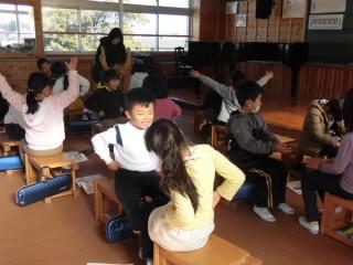 1年生の音楽と体育の授業風景です。1年生の元気にこちらが元気をもらっています。