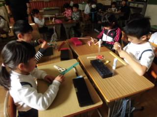 3年生も図工が大好きです。靴下や軍手、靴などを使って面白い生き物を制作していました。工夫すること、「いいこと考えた!」と、創造することは、とても大事なことです。