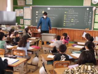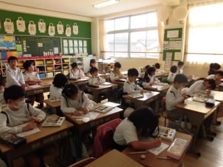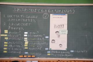 1年生の国語「サラダで元気」の読み取りの授業です。「あいうえお」から始めた1年生の成長ぶりに驚きました。