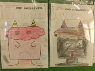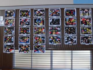 1年生は、「しゃぼんだまたのしいな」の絵の仕上げです。個性豊かな絵が完成しました。