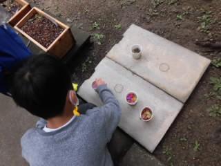 5年生の図工の授業です。色水と光とを合わせて造形遊びをしました。