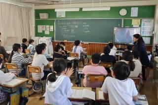 5年ろ組は、英語の学習をしていました。映像を見て、その内容をプリントにメモしていました。その後、全員でメモした内容の確認をしました。