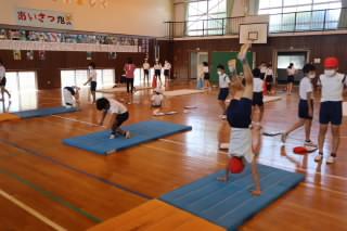 5月31日、5・6年生が体育館で体力テストを行いました。昨日は運動場で行い、今日は室内でできる種目を行いました。