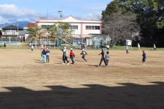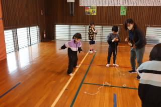 2月28日、昼の長い休み時間に今年度最後のスマイルタイムが行われました。縦割りの6つのグループに分かれ、グループの6年生が考えた遊びを楽しみました。とてもよい天気なので、全グループが運動場で遊びました。