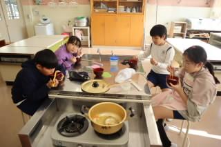 途中で塩とコショーで味付けをして完成です。どの班もおいしそうな野菜炒めが出来上がりました。お皿に盛り、みんなで食べました。みんなおいしそうに食べていました。野菜炒め大成功。家でもぜひ野菜炒めに挑戦してほしいです。