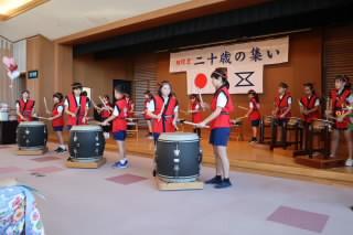 2月20日、和太鼓クラブが音楽室で演奏会を行いました。日頃の練習の成果を多くの人に聴いてもらいたいという思いから、演奏会が開かれることになりました。成人式では演奏を披露しましたが、学校で大勢の人を前にして演奏するのは初体験。少々緊張している様子が伝わってきました。音楽室には、80人以上の児童や先生が集まり、演奏が始まるのを今か今かと待っていました。