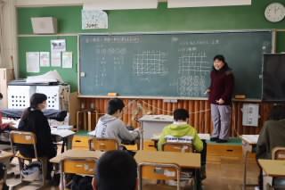 3年ろ組では、英会話の学習をしていました。SAと一緒に学ぶ最後の授業です。友達に質問してみたいことを出し合い、その中から1つ選び、.英語に直して質問していました。