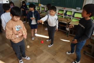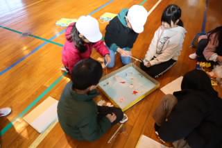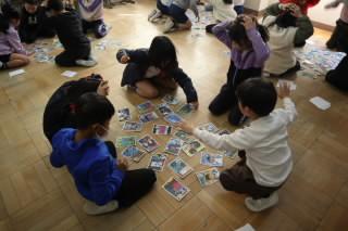 あいにくの雨で運動場が使えませんでしたが、各班の5年生が室内で遊べるゲームを考え、6年生と最後の時を過ごしました。