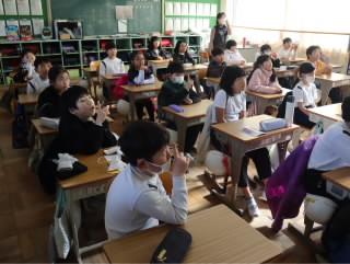 演奏が終わると大きな拍手が音楽室に鳴り響いていました。和太鼓クラブのみなさんはやりきったという表情をしていました。和太鼓クラブのみなさん、すばらしい演奏披露してくれて本当にありがとうございました。