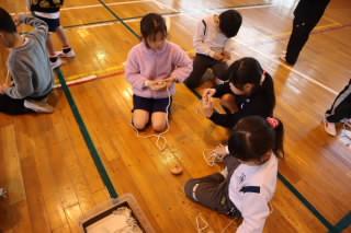 5月24日、2年生が体育館で図工「新聞紙とあそぼう」の学習を行いました。