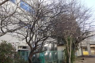 また、運動場西側のフェンス沿いにはハナモモの木が植えられています。64回生の卒業記念樹として、平成28年3月に植えられた木です。ハナモモの木にも花が咲き始めました。