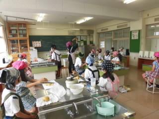 5年生は、家庭科でジャガイモをむいて、料理をしていました。