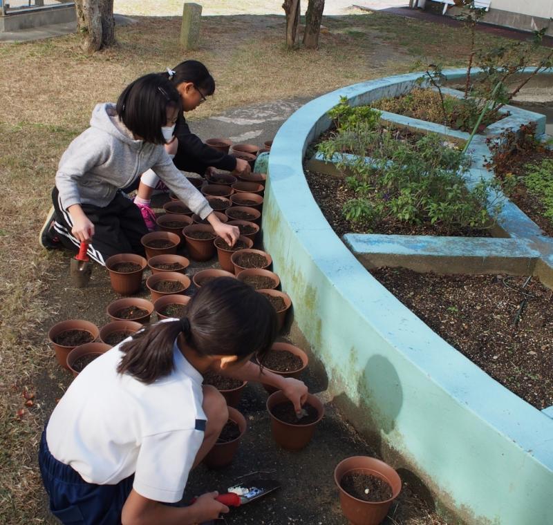 感謝の気持ちを込めて 投稿日時 : 2019/11/21 主担 4年生の子たちが、鉢にチューリップの球根を植えました。これは、いつもお世話になっている方や、110番の家に渡すものです。子どもたちは、「感謝を込めて」と言いながら、1球1球鉢に植えていました。。 これから3月まで、全校で順番を決めて水やりをし、世話をしていきます。3月には、芽を出し、かわいい花が咲いてくれるといいです Tweet {{options.likeCount}} {{options.likeCount}} 0 コメント