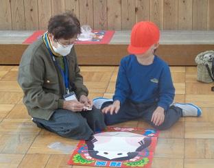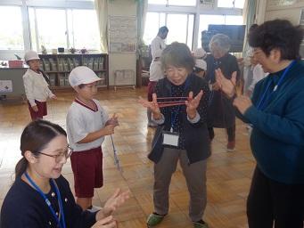 教室や体育館、プール横のスペースを使って、昔の遊びを教えてもらったり、一緒に楽しんだりしました。