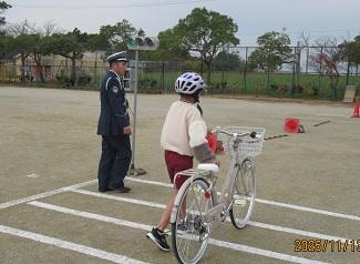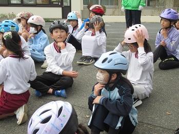 豊橋市安全生活課の方々や交通指導員のみなさんの指導の下、ヘルメットのかぶり方から自転車に乗る前の注意事項、一時停止や横断歩道の渡り方などたくさんのことを実際に体験しました。今日教えていただいたことを忘れず、交通ルールを守って安全運転に心がけてほしいと思います。
