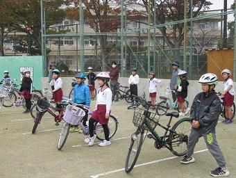 曇りがちな天気ではありましたが、運動場を使って自転車安全教室が開かれました。