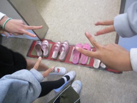 ありがとう! スリッパもばっちりそろってブイサイン!>
