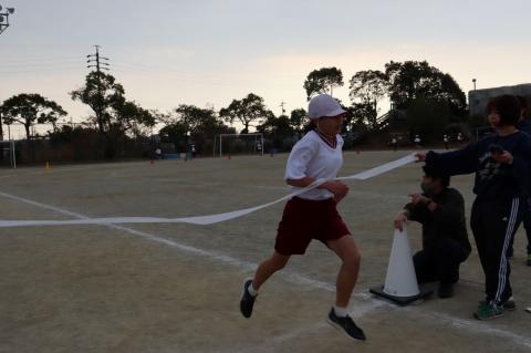 いよいよ本番。これまでの練習の成果を出し切って挑戦する持久走大会の日です。子どもたちもわくわく、どきどきしながら本番に臨みました。精いっぱい走る姿はとてもかっこよかったです。目標を達成できて満面の笑みを浮かべる子、思い通りの走りができず悔し涙を流す子、とにかく走り切ることができてほっとしている子など、走り終えた子どもたちの思いはさまざまです。それでも、保護者の皆様の温かいご声援を受けて、力の限り一生懸命に走る子どもたちの顔は、本当に輝いていました。寒い中、ご参観いただき、ありがとうございました。