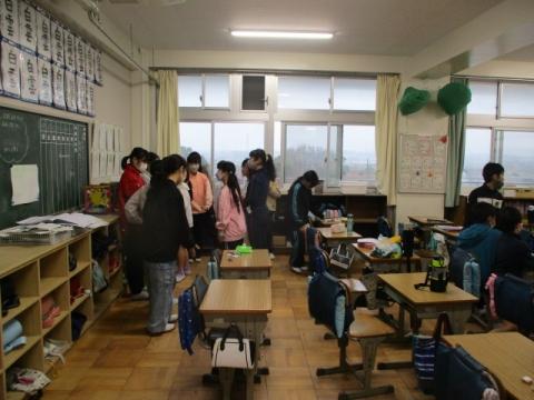 <みんなでスリッパをそろえたり、壁についた墨を拭いたりしてくれた5年生、